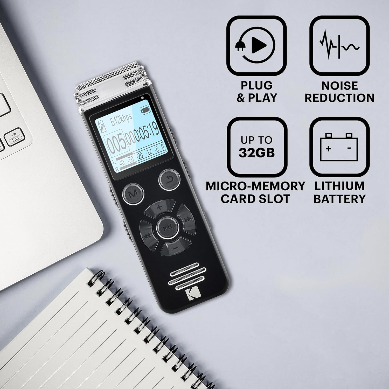 - INTEGRATED MP3 PLAYER – Listen to your recordings instantly with the built-in MP3 player, providing a complete solution for recording and audio playback without any extra equipment.